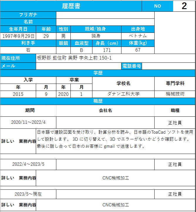 候補者情報(ベトナム 製造エンジニア)