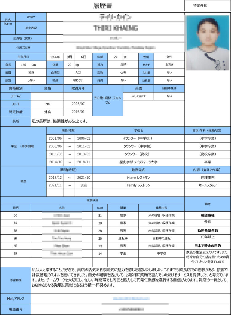 す。また、チームワークを大切にし、忙しい時間帯でも周囲と協力して円滑に業務を遂行する自信があります。貴店の一員として、
