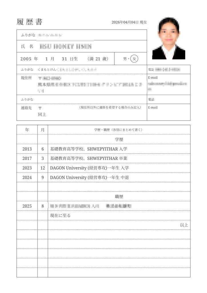 日本で長く働きなから成長していきたいと考えておりますので、何卒よろしくお願いいたします。