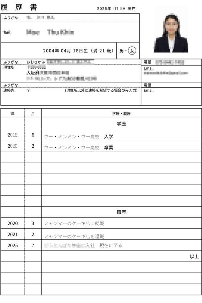 候補者情報(ミャンマー 外食人材)20260410-2