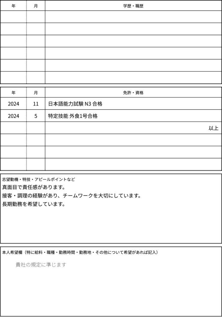 現在:日本在住。日本の外食店での勤務の経験があります。