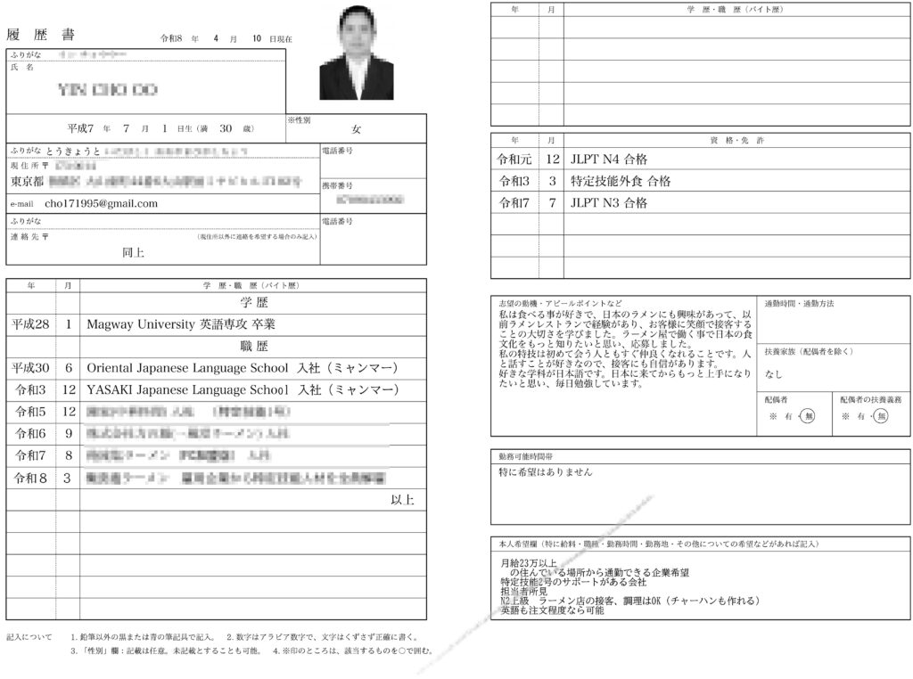 私は食べる事が好きで、日本のラーメンにも興味があって、以前ラーメンレストランで経験があり、お客様に笑顔で接客する