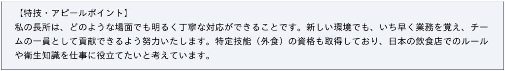 私は日本での接客の仕事に非常に強い関心を持っています。現在は介護施設の厨房でキッチンヘルパーとして働いて